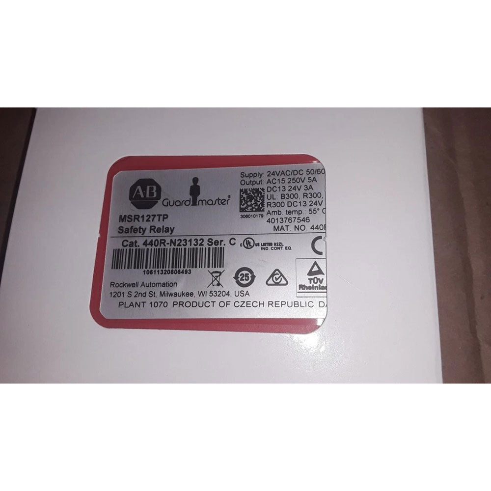 The safety relay 440R-N23132 from Allen Bradley is a vital component in overseeing safety mechanisms within industrial environments. It requires a power supply of 24 V AC/DC and supports output configurations with three normally open contacts and one normally closed contact, enabling versatile control functions. The unit is suited for applications involving safety interlocking systems.
