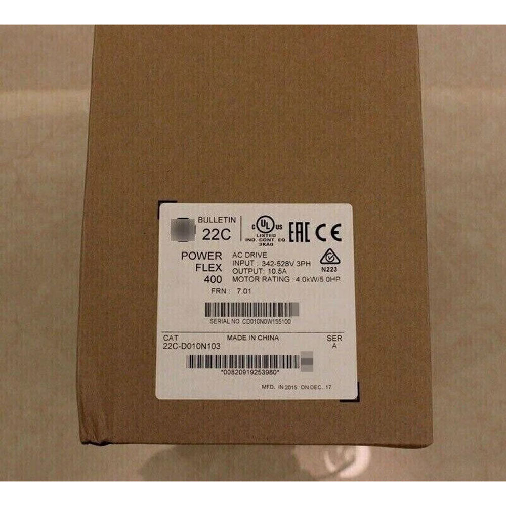The 22C-D010N103 is part of Allen Bradley's PowerFlex 400 series, serving as a reliable AC drive. This device handles a rated voltage input of 480 VAC and supports a maximum output current of 10.0 A, designed for three-phase applications.