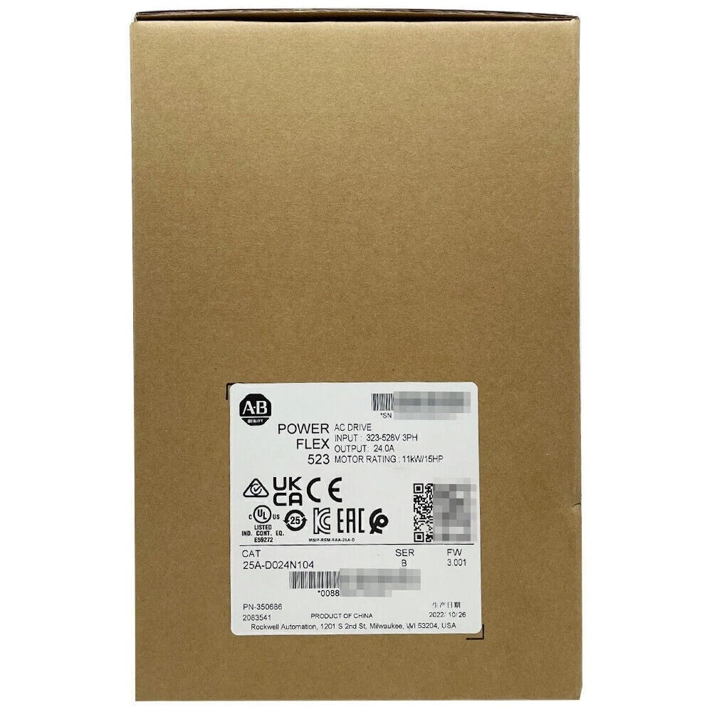 The Allen Bradley 25A-D024N104 is an AC drive from the PowerFlex 523 series designed for efficient motor control. It operates with a voltage input of 380 to 480 VAC and supports a three-phase configuration, making it suitable for various industrial applications.