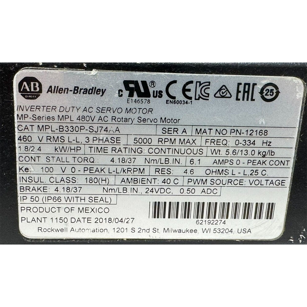 Allen-Bradley MPL-B330P-SJ74AA Servo Motor 460V 5000RPM